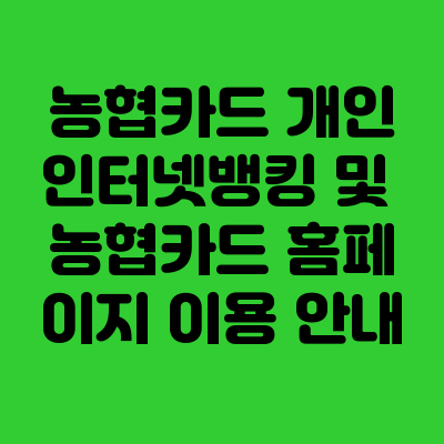 - 농협카드 개인인터넷뱅킹은 홈페이지 내 '마이페이지'에서 조회, 관리, 해지 업무를 통합 제공합니다.
