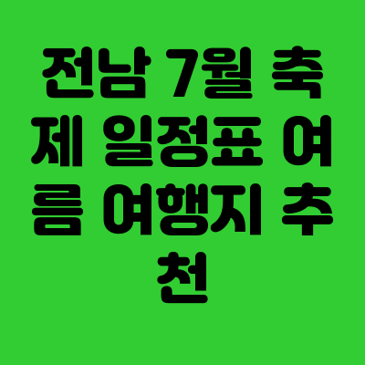 - 전남 7월 축제는 해양 자원과 청정 자연을 테마로 한 시원하고 역동적인 체험형 행사가 많아 여름 휴가지로 가족 및 젊은층에게 큰 인기입니다.
