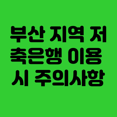 부산 지역 저축은행 이용 시 주의사항